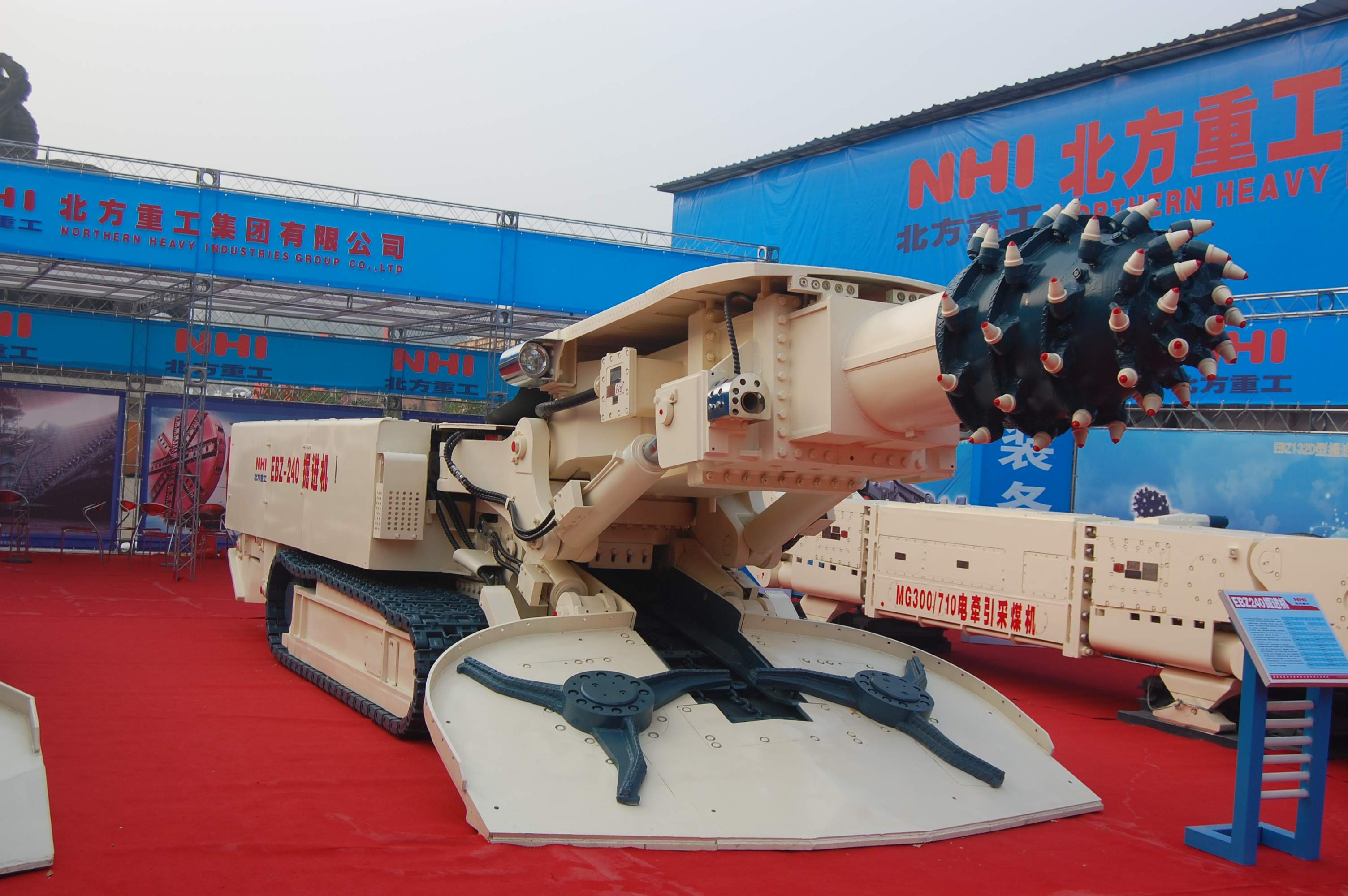 我司是國內(nèi)較早設(shè)計生產(chǎn)掘進(jìn)機的企業(yè)之一,多年來為國內(nèi)各大煤礦生產(chǎn)廠家提供了優(yōu)良的產(chǎn)品。現(xiàn)我公司掘進(jìn)機已形成系列化生產(chǎn),機型為EBZ120、EBZ132、EBZ160A、EBZ160A(矮)、EBZ200、EBZ220、EBZ240、EBZ260、EBZ320、EBH360。其中2012年我公司自主研發(fā)的EBH360橫軸式掘進(jìn)機,其工作性能指標(biāo)達(dá)到(或超過)同規(guī)格掘進(jìn)機的專業(yè)水平,控制上達(dá)到專業(yè)水平。其中橫軸式掘進(jìn)機在結(jié)構(gòu)設(shè)計和制造上都有了新的突破,攻克了在切割結(jié)構(gòu)傳動問題上的難關(guān),而且實現(xiàn)了行走兩種速度的調(diào)動,同時在液壓系統(tǒng)上實現(xiàn)了電液兩種控制功能,在電氣系統(tǒng)上實現(xiàn)了遙控控制及仿形切割功能等,其技術(shù)水平在國內(nèi)綜掘設(shè)備研發(fā)領(lǐng)域占有較高地位。