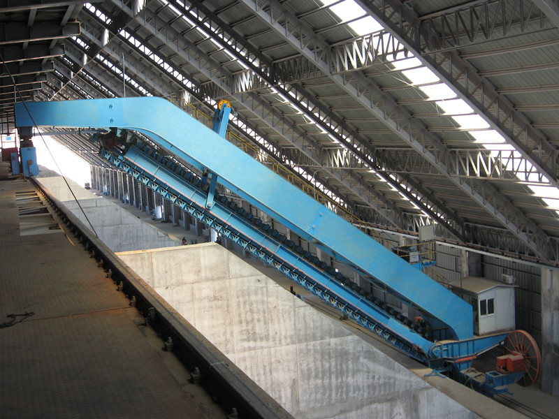 The full portal reclaimer is usually matched with the slewing side boom stacker or traveling tripper.